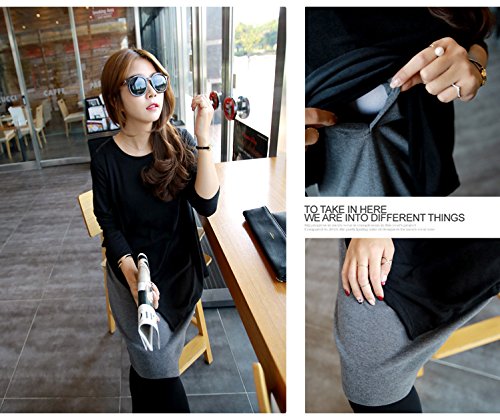 前後アシメントリーのツーピース風授乳ワンピース♪ 授乳服に見えないので、卒乳後も着れてお得で嬉しい♪ 学校行事やお宮参り、お友達や家族とのお出掛けの時なんかも活躍しそうです!!! 上の生地をめくって頂くと、授乳口が左右に縦に開いております!!! ボタンやジッパーなどはついていません♪ 厚すぎず薄すぎずちょうど良い厚さの生地でインナーが透ける心配なし!!! 下は台形スカートですが伸縮性があるので楽チン♪ カラーはブラック×グレー、ベージュ×ブラックです★