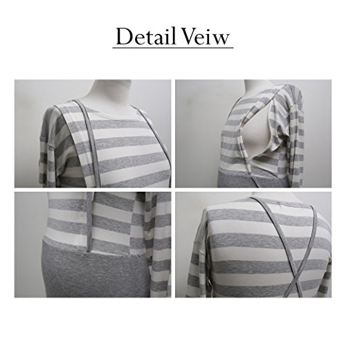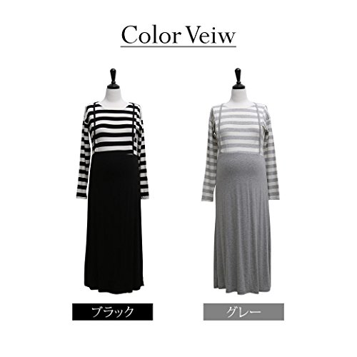 【pin25287】グレー【授乳服 ワンピース 】袖丈が選べる!サスペンダー風 ボーダーT+ロングスカート 授乳服ワンピース onepiece 授乳ウェア