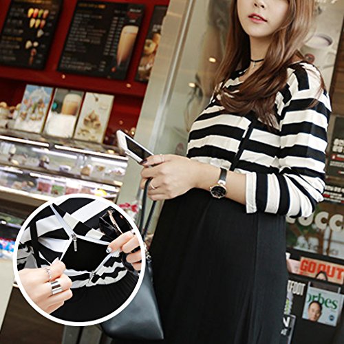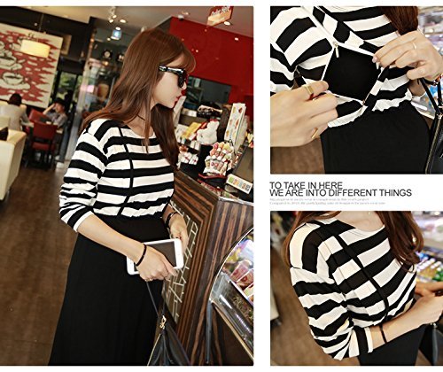 サスペンダー風の生地が付いたとってもかわいいロングワンピースのご紹介♪ これ1枚でコーデが完成してしまうデザイン性も高さが◎ 春秋は1枚で、肌寒くなってからはアウターと合わせて長く着てください。 着心地もいいのでお家でのリラックスタイムはもちろん、お買い物などのちょっとした外出にもOK!!☆ 授乳口は左右両サイドに縦ジッパーがついたタイプ。 肩ひもの部分と重なるので授乳服だとわかりにくくなっています!! 伸縮性も非常にあるタイプの生地を使用しているので動き易く、普段の家事や育児などにも便利☆ ほとんど透け感はありませんが気になる方は、インナーに注意してください♪ 丈も長すぎないロング丈なので、丈が短いワンピースやスカートが苦手な方にもおすすめ!! 産前だけでなく、産後も使えるデザイン性が嬉しいポイント! ※製品の特性上、ボーダーが真っ直ぐになっていなかったり、ずれたりしていることがありますが 不良品ではございませんのでご了承ください。