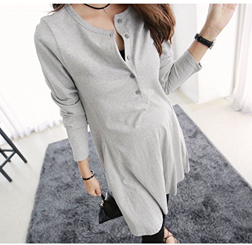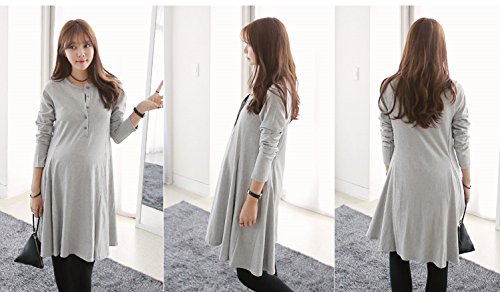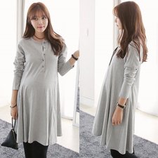 いつでもどこでもお洒落を楽しみたい方にお勧めの授乳ワンピース♪ ウエストから切り替えが入って緩やかに広がる美ラインのシルエット◎ フレアラインのシルエットで可愛らしさと女性らしさを演出 気軽に着れるマタニティ・授乳ワンピをお見逃しなく!! シルエットはAラインになっておりますので、妊娠初期・産後はもちろん、マタニティ期以外にも着て頂けます。 コットン100%の素材が肌にも優しく、ママも赤ちゃんも安心ですね☆ ワンピースのポイントともなる5個の前ボタンで授乳もラクラクです◎ アイボリーは淡い色味の為、インナーの色にご注意ください。 カラー:グレー サイズ:フリー