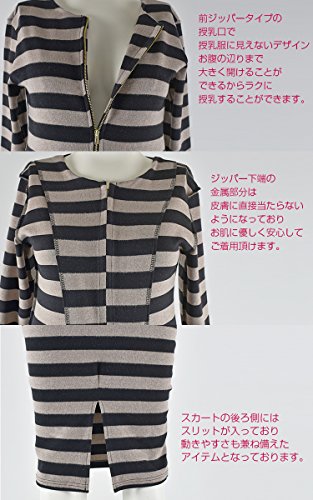 オフィスではあまりカジュアルな格好ができなくて困っている方必見!! ノーカラー&ひざ丈スカートでオフィス用として大活躍☆★ ボーダーなので飽きずに長く着れ、嬉しいポケットも♪ ノーカラーなのでスッキリ見えますが、胸元のファスナーは リアルファスナーなので少し開けて鎖骨をチラ見せして女性らしさをアピールしても♪♪ 冬先まで着れる程よい厚さの生地感です! オフィスだけじゃなく、もちろん普段着やお出かけ用にもバッチリな授乳服です♪ 裏地は無いですが透け感も気にならず、裏地がない分伸縮性があります! ポケットがある腰周りは少し広がったデザインですが、 ダボッとした感じが無い為産後もマタニティウェアには見えない感じで着れます☆ 胸元がファスナーになっているのでファスナーを下ろして頂ければ授乳も◎ 授乳の際ファスナー部分を中に織り込むと赤ちゃんの肌にも安心☆ 通常の授乳ワンピは授乳口が1つですがこれなら左右どちらも可能♪ ジッパーが素肌に触れないようジッパーの裏にも当て布がしてあるので、肌が敏感な方も安心です。 ※2016.9より秋用に変更となり、これからの時期に心地よく着用できる素材になっています。 スッキリとしたラインはそのままなので、もちろん産後にもGOOD♪ カラー:ベージュ サイズ:Free