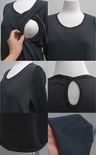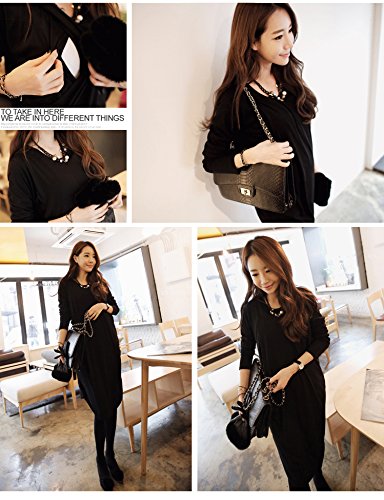 シンプル&着丈長めなのでオフィス用としても可能な授乳服ワンピース♪ 首元にストールやアクセサリーなどを使って華やかにしても♪ 着丈は通常のワンピースより少し長めの膝くらいの丈なのでとても上品な印象です☆ アウターを選ばず着れるのでウールコートやきれいめダウンコートなどとのコーディネートを♪ 伸縮性があるので着やすさ抜群です! 胸元の両サイドに授乳用スリットがあるので左右どちらからも授乳が可能なワンピース♪ 伸縮性がありウエストラインもゆったりしているので出産間近の方も着れるので長期間着用可能◎ 裏地が無いですが透け感が無いので1枚で安心して着れます☆ 2016.9.22より薄裏起毛バージョンも販売を開始しました。 ※カラー選択の際に裏起毛を希望の方は「カラー名(裏起毛)」を、一般生地をご希望の方は「カラー名」を選択して下さい。 【授乳服 ワンピース】 カラー:ブラック、チャコール、カーキ、グレー、ブラック(裏起毛)、チャコール(裏起毛)、カーキ(裏起毛) サイズ:Free