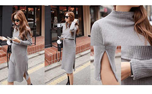 【ld108722】(ブラック)裏起毛 綿100% 両サイドスリット ハイネック 痩身効果 授乳服 ワンピース 伸縮性が良いので動きやすい
