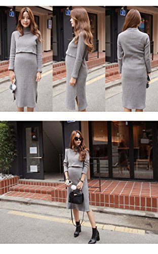 柔らかく伸縮性もいい性能抜群の授乳服ワンピースをご紹介! カラーはブラック、チャコール、ワインの3色ご用意させて頂きました! 上の方のフラットを持ち上げると授乳口がありますが、マタニティワンピースということが分かりにくくなってます。 授乳口は授乳がしやすい形になってるので負担なく授乳出来ちゃいます! 丈も膝を覆ってくれる長さで、体に軽くフィットする感じなので着心地◎ リブ生地だから痩身効果もあり!! 裾にスリットが入っているので動きやすく普段使いにもぴったりのワンピース♪ ネックラインもハイネックで首を暖かく包んでくれ上品な雰囲気も出してくれます。 カラー:ブラック、チャコール、ワイン サイズ:フリー