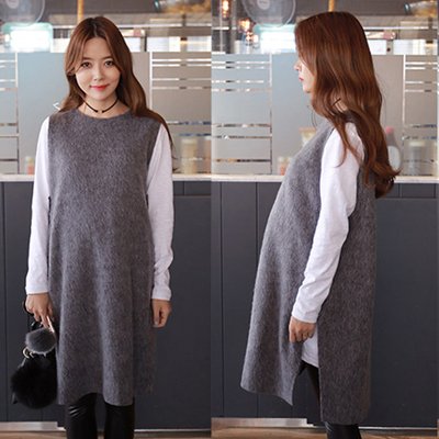 【ld108729】 (カーキ)産前産後兼 起毛素材 スリット入り ノースリーブ ワンピース マタニティウェア マタニティワンピース maternity