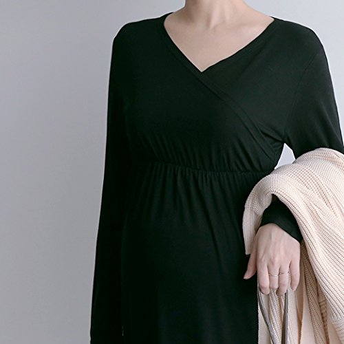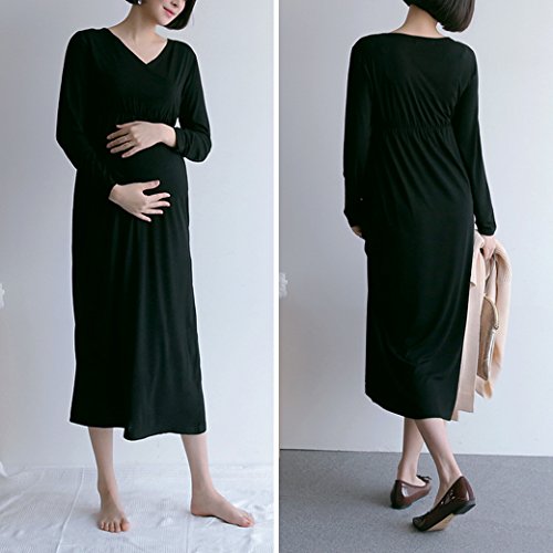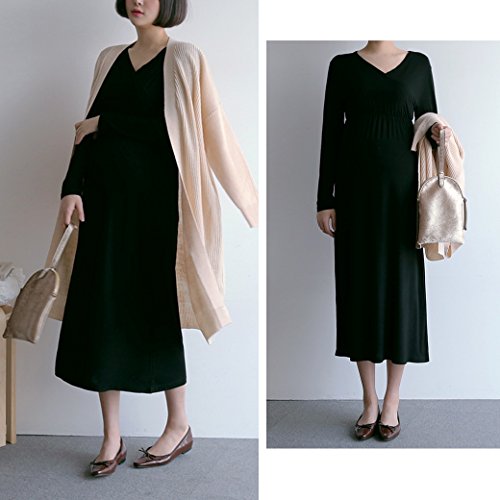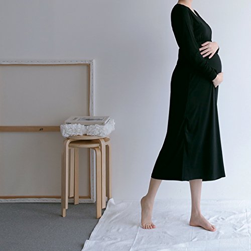 ハイウエストの部分でリボン風のポイントが縦にすっきり見える効果をもたらしてくれ、体型カバーにもなります。 ベーシックなカラーとデザインで着まわししやすく妊娠・授乳期に重宝するアイテムになるでしょう。 裏地はありませんが透け感はほぼありません。 気になる方はインナーを着用して下さい。