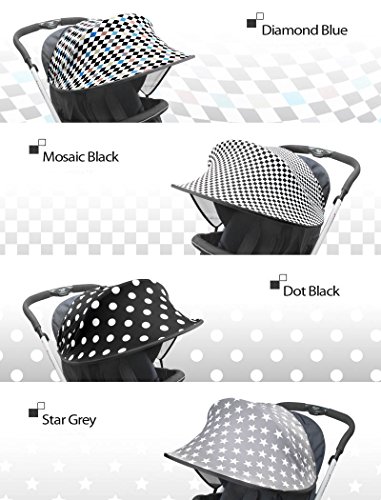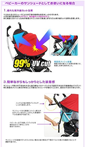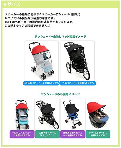 - サイズ:ベビーカー自体にシェード(日除け)のあるものなら機種、タイプ、メーカーに関係なく装着可能。(双子用ベビーカーにはお使い頂けません。)