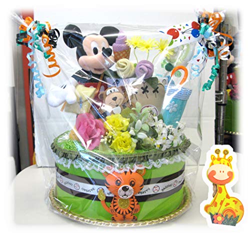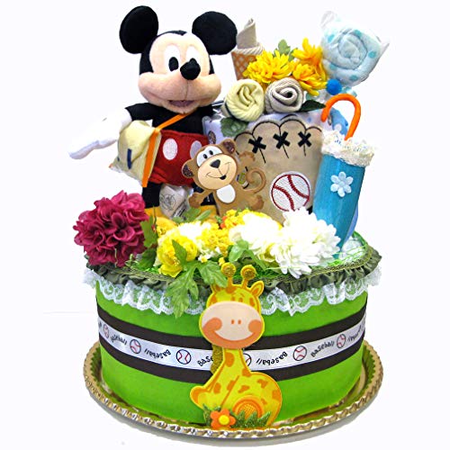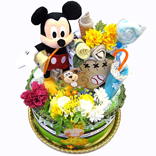 出産祝い おむつケーキ ディズニー キャラクター ミッキーマウス 誕生プレゼント ダイパーケーキ ギフトに人気 パンパース42枚 男の子 (W) DK1086A-S