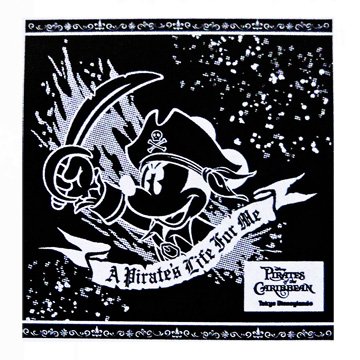 東京ディズニーランド パイレーツ・オブ・カリビアン パイレーツミッキー柄ウォッシュタオル。東京ディズニーランドで6月15日より開催される『パイレーツ・オブ・カリビアン』の世界を舞台にしたスペシャルイベントに先駆けて4月28日にパイレーツミッキーのグッズが発売されました。黒地に白で描かれたパイレーツミッキー柄のウォッシュタオルです。パイレーツミッキーと『PIRATES Of the CARIBBEAN』のロゴが描かれています。綿100%サイズ::縦・約34cm、横・約35㎝、
