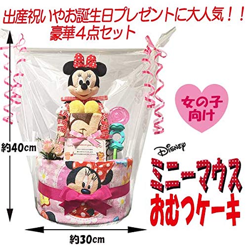 出産祝いに大人気! ディズニー ミニーのおむつケーキ/赤ちゃんの内祝い・誕生日プレゼント ギフトセット ダイパーケーキ/女の子 (パンパースS20 (出産祝い用に))