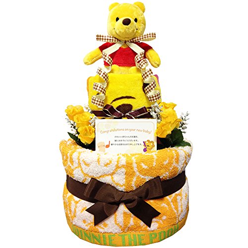 人気のディズニー くまのプーさんのタオルやぬいぐるみ、おもちゃを使い、かわいいおむつケーキに仕上げておりますので、出産祝いはもちろん、内祝い、100日祝い、ハーフバースデー、初節句、お誕生日プレゼントに大変喜ばれるギフトです。