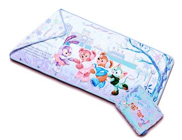 東京ディズニーシー 10月23日発売の2017クリスマス アイススケートを楽しむダッフィー、シェリーメイ、ジェラトーニ、ステラ・ルーの柄のブランケットです。ブランケットにボタンがついていて、ひざかけ/腰に巻きつける/肩にかける/ボレロ風、ケースに収納するとクッションにもなり5wayで使用できるよ!イヤーマッフルを付け、足にはアイススケート靴姿。みんな上手に滑れるかな? サイズ:たて約60×よこ約136cm (収納ケース)たて約27×よこ約35cm