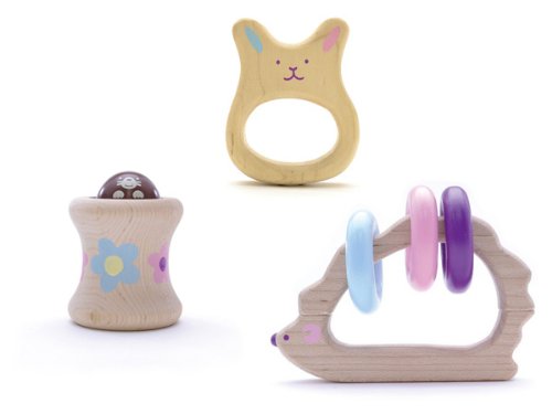 【3個合計 税抜き定価:2,700円】 【シャカシャカうさぎ説明】 振ると「シャカシャカ」やさしい音が赤ちゃんの興味を誘います。 赤ちゃんにもわかりやすいうさぎのデザインです。うさぎの耳が手や指先のいい刺激となってくれます。 ママと一緒にお歌に合わせてシャカシャカしても楽しいね♪ 赤ちゃんの小さな手でも、にぎりやすく設計されています。 【コトコトもぐら説明】 コトコトという木のやさしい音が赤ちゃんの興味を誘います。 2色のモグラは赤ちゃんが識別しやすいコントラストのある配色にしています。 ママが指でモグラ動かし「いないいないばぁ」と遊んみても楽しめますよ。 転がして遊んでも!ハイハイして取り行こう♪ 赤ちゃんの五感を刺激するラトルです。 赤ちゃんの小さな手でも、にぎりやすく設計されています。 【カチャカチャはりねずみ説明】 振ると3色のリングがカチャカチャと動いて音が鳴るラトルです。 衝撃性に強いメープルの木を使用して、角を丁寧に研磨で落とした安心のベビー玩具です。 赤ちゃんの五感を刺激するラトルです。 赤ちゃんの小さな手でも、にぎりやすく設計されています。 【ご使用上の注意】※この積み木は、柔らかい天然無垢材(桐)を使用しております。 赤ちゃんによっては口に入れたり、歯が生え始めた頃に噛んだりすることがあります。 口に入れても安全な素材ですが、噛み続けると木の繊維が剥がれる場合がありますので、誤ってお子様が口の中を傷つけないように、保護者の元で遊ばせてください。