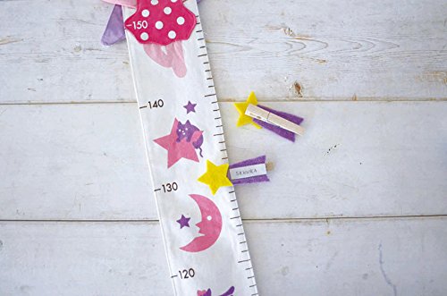 星のクリップが3個付いた身長計 [本体サイズ] (約)160×15×高さ1110mm [素材] 布製 [セット内容・付属品] クリップ3個付き 色:うさぎ 星のクリップが3個付いた身長計です。 下はポケットになっています。 クリップには名前や日付を入れておけます。 ※身長計の目盛りについて:布の性質上若干伸縮がありますので目盛りはあくまでも目安としてご使用ください。