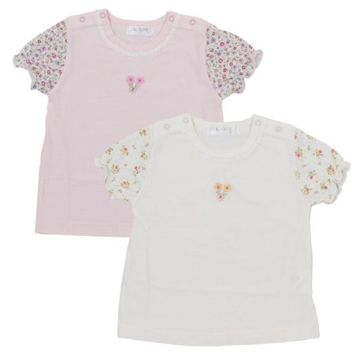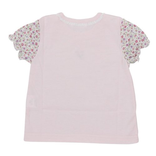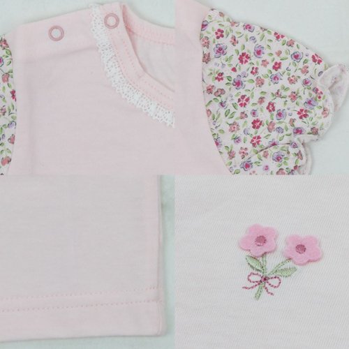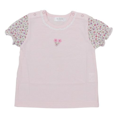 日本製 小花柄使フリル 両肩ボタン フレンチ半T ピンク 70cm