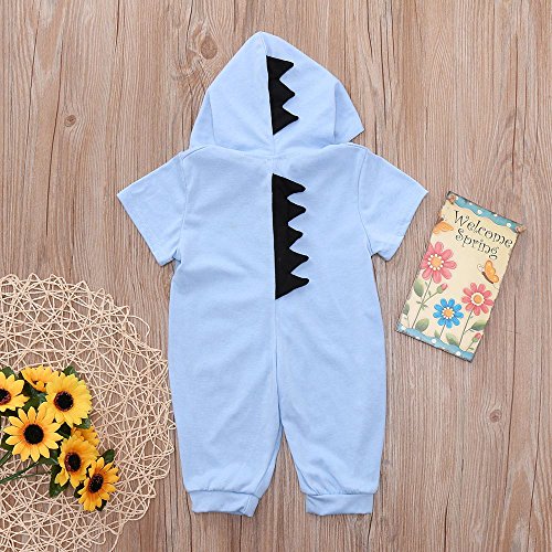 パジャマ アンサンブル Timsa かわいい 小恐竜 ロンパース ベビー服 女の子 赤ちゃん服 幼児 子供服 男の子 フード付き 3D 漫画 ベビー着ぐるみ 長袖 半袖 キッズ服 ロンパース カバーオール 仮装衣装 動物パジャマ 満月/出産祝い/プレゼント サイズ選択可 (70CM/3-6ヶ月, 半袖 キッズ服 ブルー)