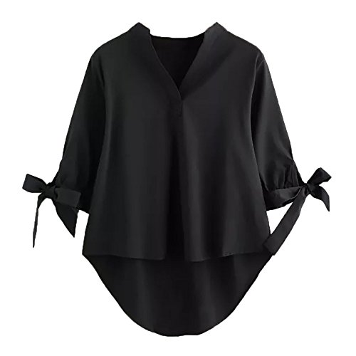 トップス レディース Tシャツ Timsa シャツチュニック ブラウス 可愛い 体型カバー おしゃれ セクシー 無地 上着 春夏秋 women ゆるtシャツ ちょう结び 七分袖 カジュアル カットソー きれいめ ヘビーウェイト ゆったり デザイン 2018 (XL, ブラック)