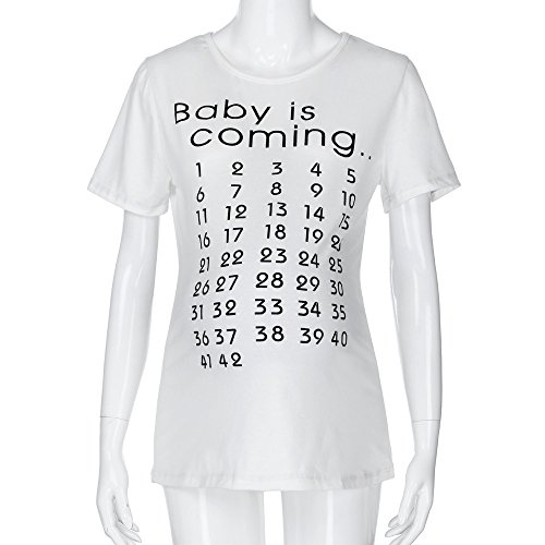 マタニティ服 Timsa 妊娠服 上着 トップス レディース ルームウエア パジャマ 半袖 カットソー 数字柄 ブラウス 春 夏服 女性 快適 ゆったり T-shirt 産前産後 体型カバー ママ用 お宮参り Tシャツ 上品 (M, ホワイト)