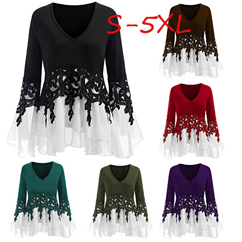 レディース Tシャツ Timsa 上着 朝顔花柄 アップリケ シフォンシャツ 長袖 v襟 トップス 修身 着痩せ 体型カバー カットソー おしゃれ 学生 制服 T-shirt スプライス フェイクインナー フェイクレイヤード 防寒 春秋冬服 大きいサイズ 人気