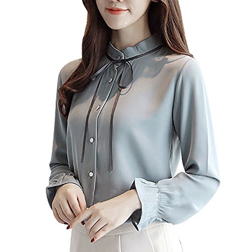 ブラウス レディース Timsa トップス ポロシャツ ファッション 長袖 シフォン シャツ 可愛い ちょう结び 無地 立ち襟 カットソー スピーカースリーブ 透け 上着 春秋冬 修身 瘦身 通勤 通学 オフィス ビスチェ 事務 旅行 デート (XL, ブルー)