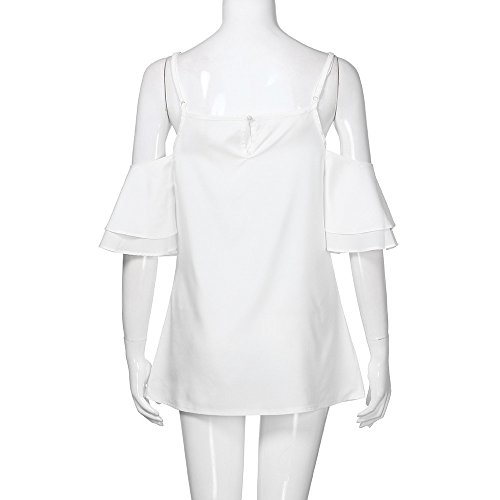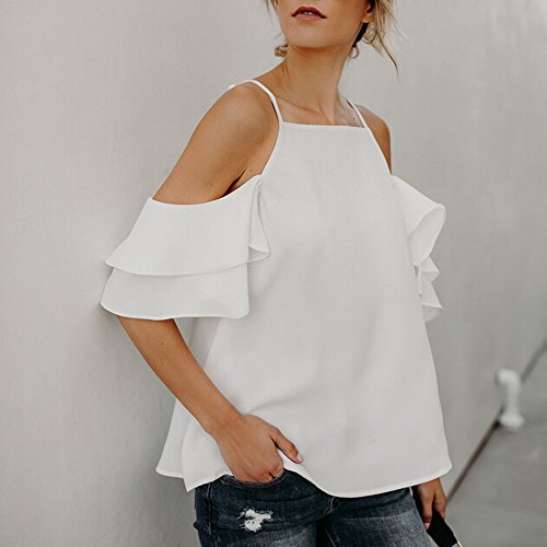 オフショルダー トップス Timsa レディース 肩出しブラウス 半袖 ベアトップ シャツ フリル 女子 シフォンシャツ カジュアル カットソー 着痩せ セクシー スタイリッシュ ゆったり 体型カバー かわいい 春秋冬 Tシャツ 人気 きれいめ 通勤 通学 (S, シフォンシャツ ホワイト)