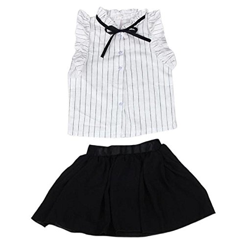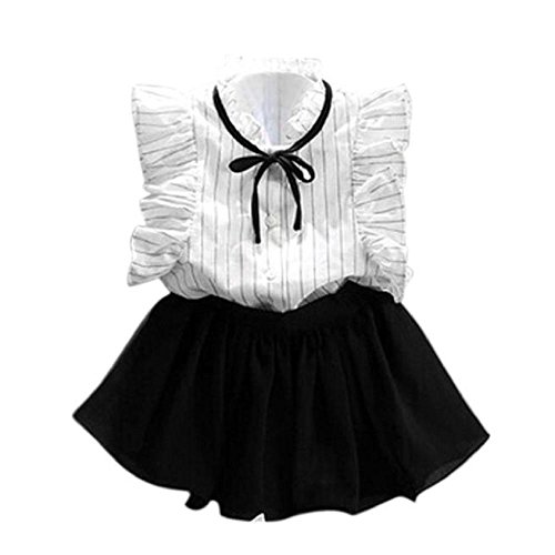 子供服 2点セット Timsa 女の子 無地 上下セット Tシャツ+パンツ 無地ズボン ストライプシャツ シフォンパンティー 可愛い 袖なし トップス 赤ちゃん服 ガールズ 春着 夏物 韓国風 普段着 花見 旅行 海遊び 子供の日 プレゼント (130CM, 黒と白)