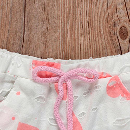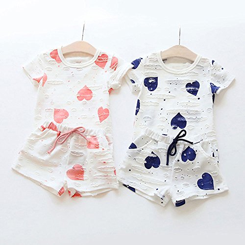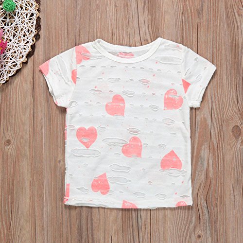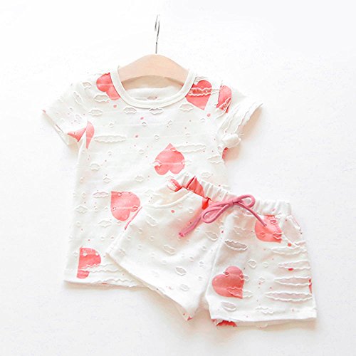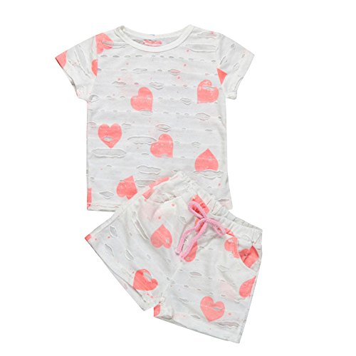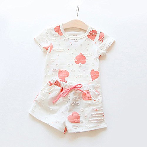 子供服 半袖Tシャツ Timsa ガールズ アンサンブル Tシャツ カットソー 幼児の赤ちゃんキッド ガールズ ベスト シャツ ブラウス ショットパンツ カジュアルパンツ 衣装 心柄のベストTシャツ+パンツ 2点 セット 2018 人気 流行 (130, ピンク)