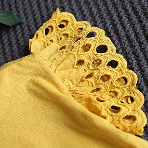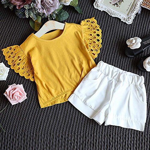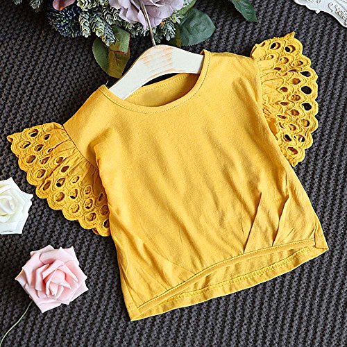 ベビー服 タンクトップ Timsa 女の子 子供服 半袖Tシャツ 上着+ズボン 2点セット 衣装 フライスリーブ 無地 柔らか 着心地 お祭り パーティー ダンス 日常生活 カジュアル 可愛い 2-7歳 誕生日 プレゼント 花見 お出かけ 旅行 海遊び (130cm, イエロー)