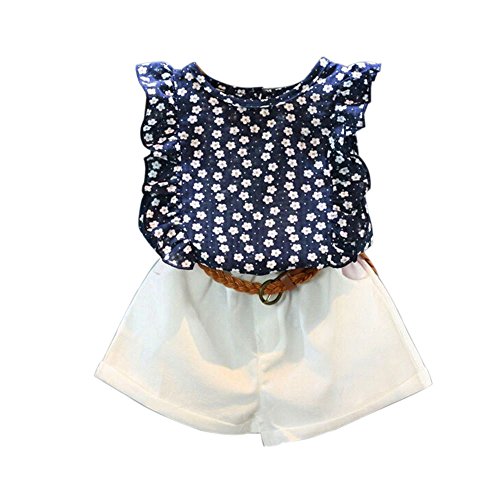子供服 2点セット Timsa 女の子 夏服 ショット丈パンツ ノースリーブ タンクトップ トップス カジュアルパンツ セットアップ チェック柄 ベビー服 ガールズ 春夏 韓国風 上下セット 入園式//出産お祝い/子供の日 プレゼント 花見 旅行 海遊び (120CM, 小さな花柄)