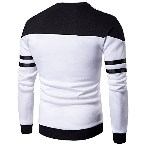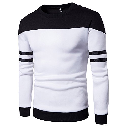 上着 Timsa メンズ Tシャツ カジュアル スウェット スプライス クルーネック スウェット 混合色 ジャージ 秋冬春 長袖 防寒服 男の子 運動風 トップス 通勤 通学 部屋着 (ホワイト, XL)
