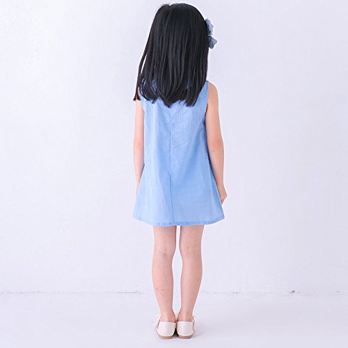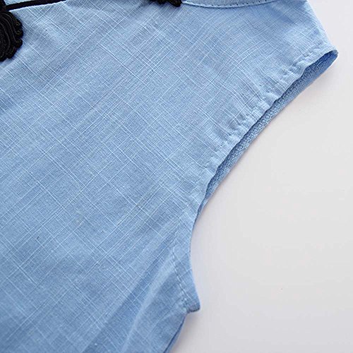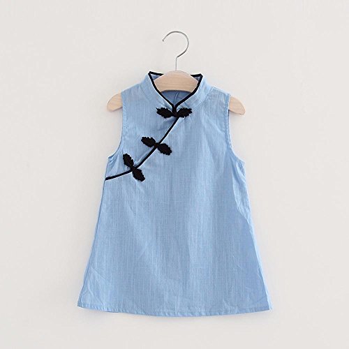 子供服 ワンピース Timsa 中国風 チャイナドレス 可愛い 幼児 女の子 膝丈 ロングスカート 夏秋 プリンセス ドレス キッズ ベビー パーティー ウェディング ノースリーブ チョンサム (120cm, ブルー)