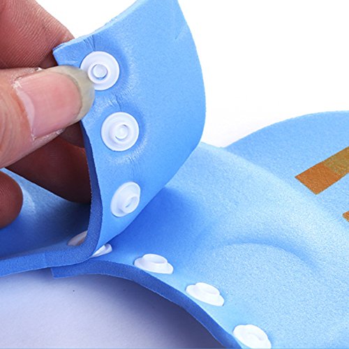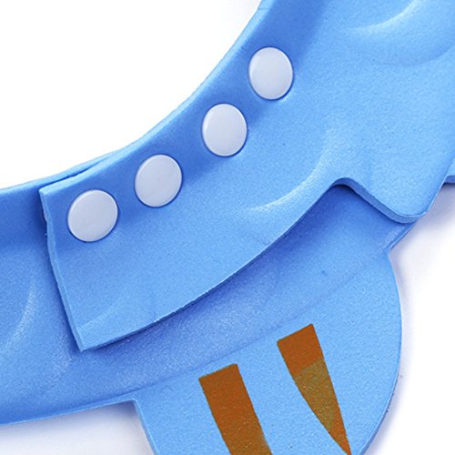 子ども用シャワーキャップで、すすぎ湯やシャンプーがお子様の目に入るのを防ぎます。 四つのボタン付けはサイズを調節できます。とても柔軟で、伸縮性がよいです。 ソフトなEVA素材で、無臭、非毒性の環境材料で、安心に使えます。