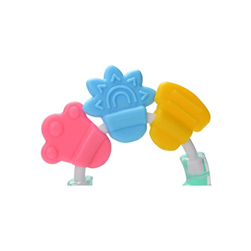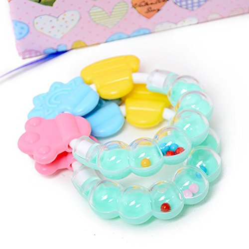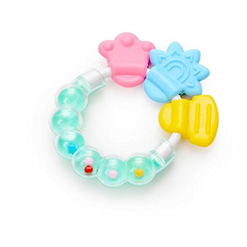 カラー:ピンク/ブルー/グリーン サイズ:9 . 5×7 cm 歯ぐきにやさしい素材でかみ分けでき、振るとシャカシャカ音がして口手耳に刺激を与えます。 使用する前には必ず洗浄・消毒してください。