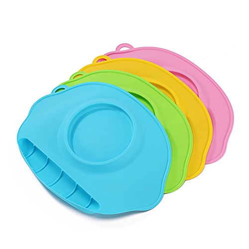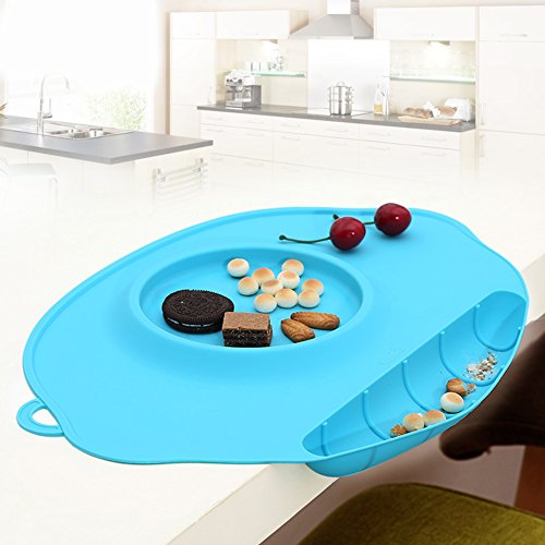 トトハウス(TOTO HOUSE) 100%食品等級 子供用 シリコーンプレースマット ひっくり返らないベビー食器 掛け耳付き (ブルー)