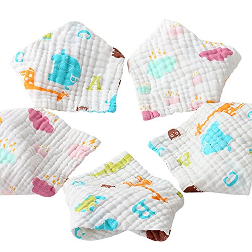トトハウス(TOTO HOUSE) 6層の綿ガーゼ ビブ 新生児 ベビー用 三角巾 スーパー吸収力 ソフト& 通気性男女兼用 5枚入れ