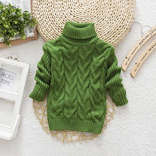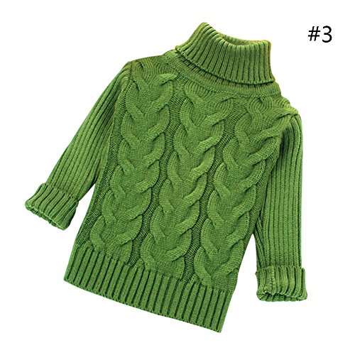 トトハウス(TOTO HOUSE) 子供服 女の子 男の子 高襟 セーター 長袖 編み ニットセーター 秋冬 防寒 普段着 通学 通園 純色 お出かけ (緑, M)