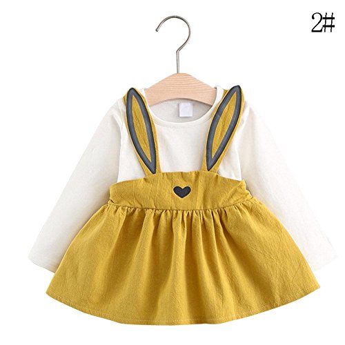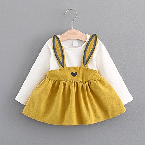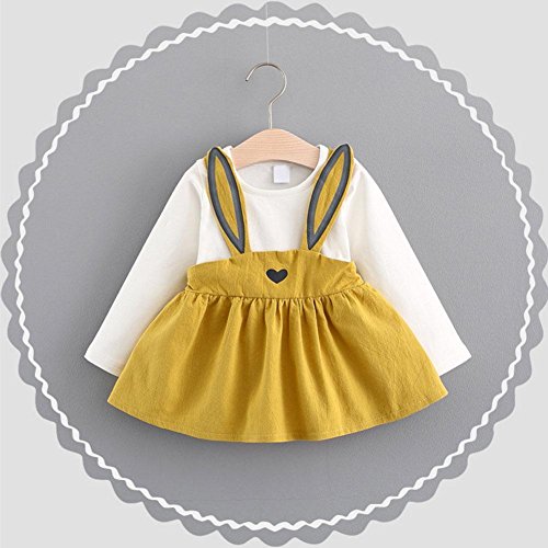 トトハウス(TOTO HOUSE)子供服 ワンピース つりスカート 長袖ドレス オシャレ 秋 綿 通園 発表会 旅行 記念日 プレゼント (90, イエロー)