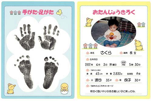手を汚さずに赤ちゃんの手形足形がとれます。