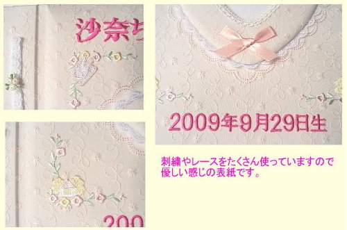 補充台紙 セット 出産祝い に・・丁寧な 刺繍 名入れ一生使える ベビー アルバムC070-323/324 (ピンク)