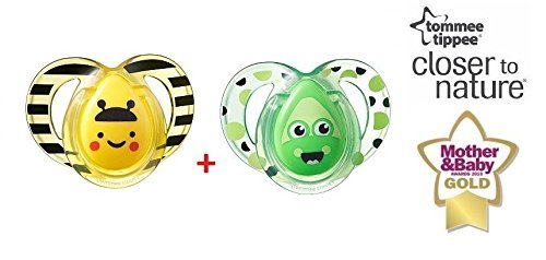 TOMMEE TIPPEE FUN STYLE Nr.43335874- 2x Soothers Pacifiers Dummies Orthodontic Silicone/GREEN+YELLOW(6-18m) by Tommee Tippee