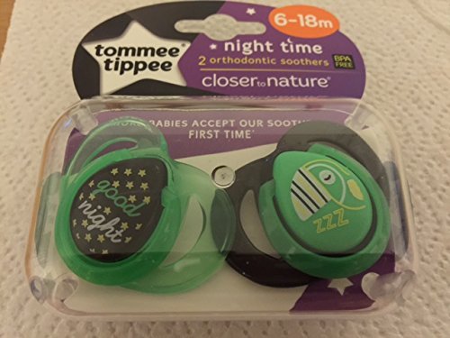TOMMEE TIPPEE NIGHT TIME CLOSER TO NATURE ORTHODONTIC SOOTHERS 6-18M BLACK/GREEN by Tommee Tippee