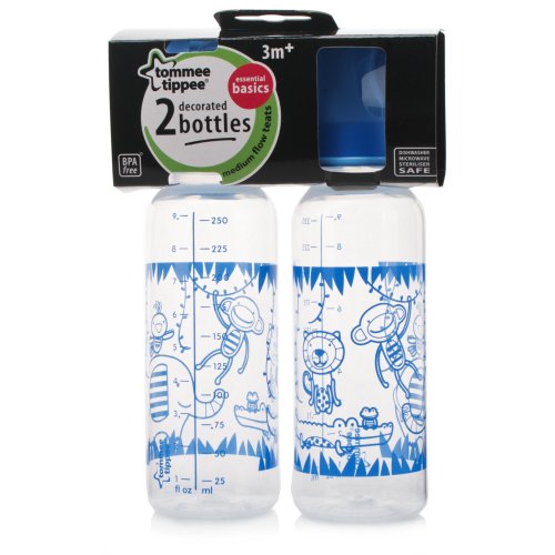 Tommee Tippee Essential Basics Standard Neck Decorated Bottles 2x 250ml/9floz (Boy) by Tommee Tippee