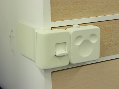 赤ちゃんのいたずらを防止するため、引き出しにつけるロックです。