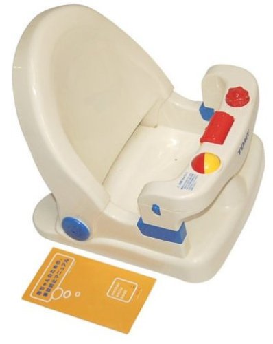 ワンタッチでリクライニングができるベビーバスチェア。赤ちゃんをバスチェアにすわらせておけば、パパやママも安心して体を洗うことができる。