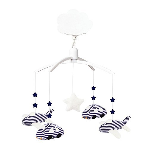 Musical mobile would look great in any nursery;Blue and white striped palne and car motif;Part of a collectable range;Suitable for newborns;Made from high quality materials