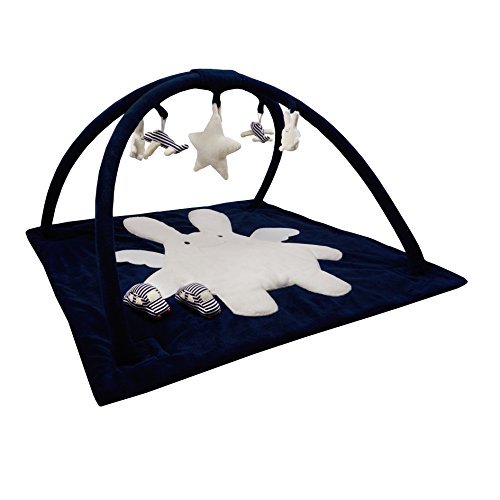 - Trousselier - Musical Activity Mat - Square - 90 cm - Navy Blue with Rabbit Angel and Car and Planes Design
