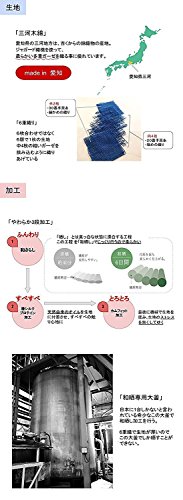- 【三河木綿】愛知県の三河地方は、古くからの綿織物の産地。【6重織り】6枚合わせではなく6層で1枚の生地。中4枚の粗いガーゼを挟み込むように織り上げています。【やわらか3段加工】「和さらし」和晒しでじっくり行うのでふんわり柔らかくなります。「椿シルクプロテイン加工」天然由来のオイルを生地に付着させ、すべすべの触り心地に。「カムフィット加工」機械で生地を揉み、とろとろな手触りに。【和晒専用大釜】希少な大釜で和晒し加工を行う。6重織りで生地が厚いのでこの大釜でしか晒すことができません。