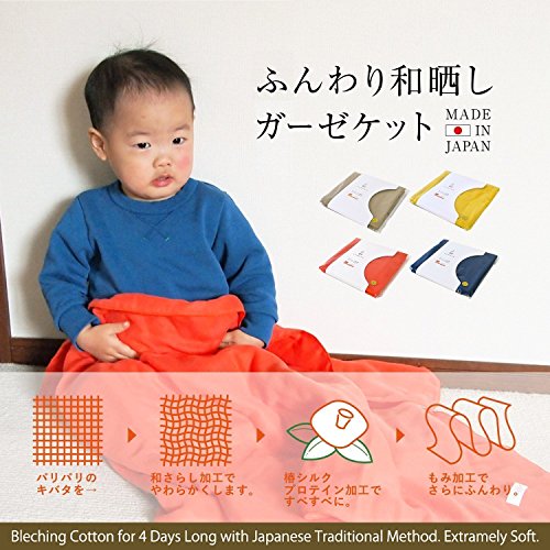 - ≪ガーゼケット≫さらしの加工は通常40分程度で仕上げてしまいますが、和晒し加工は必要最低限の薬品で4日程度の時間をかけて漂白します。繊維にストレスを与えていないため、従来のガーゼにはないふわっとソフトな風合いに仕上がっています。そのため、赤ちゃんにも安心してお使いいただけます。心地よいやわらかな手触り。国産6重織りガーゼで、さらさら快適。シングルサイズの1/4のサイズです。冷房対策としてひざ掛けに、お子様のお昼寝に、赤ちゃんのおくるみ等、色々使えちゃいます!