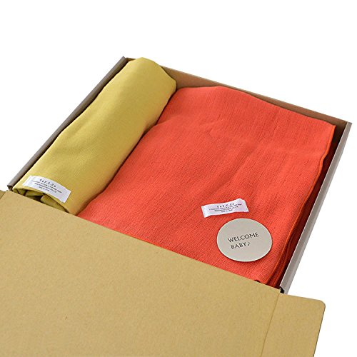 TRANPARAN ベビーギフトセット cumuco和晒6重ガーゼケットとデイリーガーゼフェイスタオル (イエロー×オレンジ)