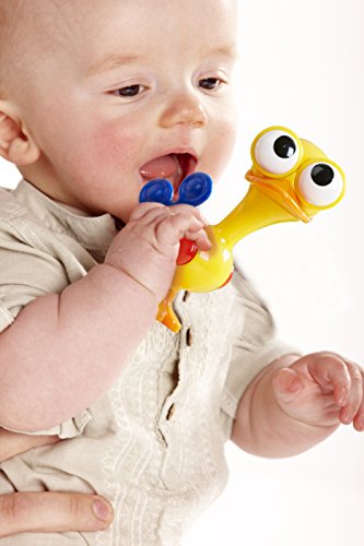 Easy to grip;Pliable tail is perfect for teething;Rattling body and squeaking wings;Clicking head and feet;Moveable eyes can be positioned in numerous fun ways